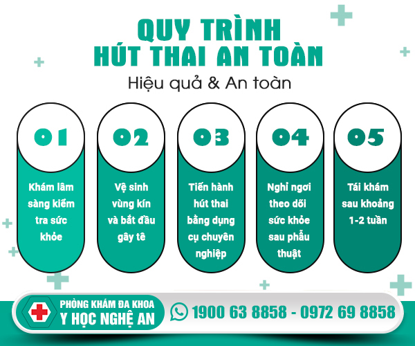Trên đây là chia sẻ giúp chị em nắm được tường tận quy trình hút thai an toàn? Nếu còn bất cứ băn khoăn gì hãy vui lòng liên hệ với phòng khám thông qua 1900 638 858 / 0972 698 858 sẽ được tư vấn miễn phí 24/7. Hoặc trực tiếp đến phòng khám đa khoa y học Nghệ An để thăm khám và đình chỉ thai bằng phương pháp tân tiến.