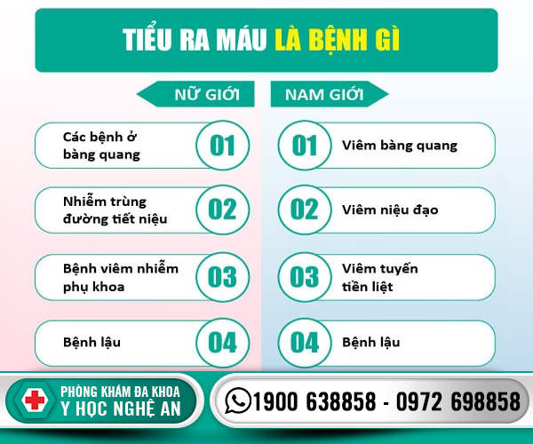 Dưới đây là những bệnh lý phổ biến có thể gây ra tình trạng tiểu ra máu: