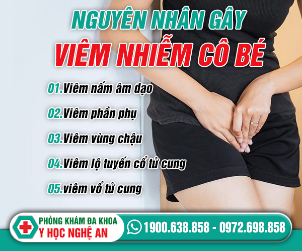 Có rất nhiều nguyên nhân gây ra tình trạng viêm nhiễm ở cô bé như chị em như bị dị ứng hóa chất và băng vệ sinh, mất cân bằng môi trường âm đạo, rối loạn nội tiết tố, mặc quần lót quá chật, do bị viêm âm đạo hay các bệnh phụ khoa như: