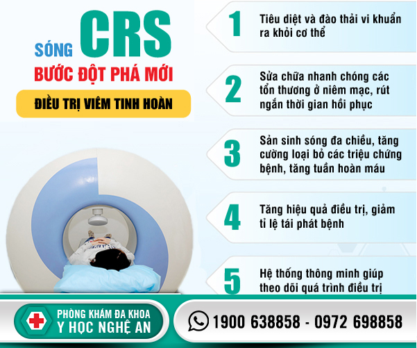 Đặc biệt, phòng khám ứng dụng công nghệ CRS giúp điều trị một số bệnh lý thường gặp gây đau tinh hoàn như viêm tinh hoàn, xoắn tinh hoàn, giãn tĩnh mạch thừng tinh,…Công nghệ Viba điều trị viêm bao quy đầu….