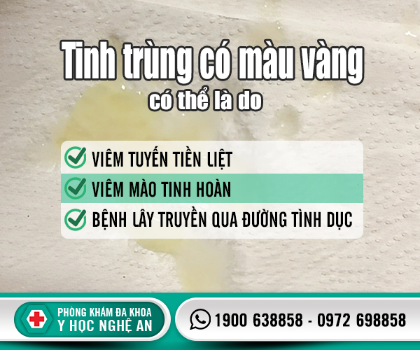 Tinh trùng có màu vàng là dấu hiệu bất thường cảnh báo nhiều bệnh lý nam khoa như viêm tuyến tiền liệt, viêm túi tinh, rối loạn nội tiết hoặc nhiễm trùng đường sinh dục. Nếu không được can thiệp kịp thời, tình trạng này có thể ảnh hưởng nghiêm trọng đến khả năng sinh sản.