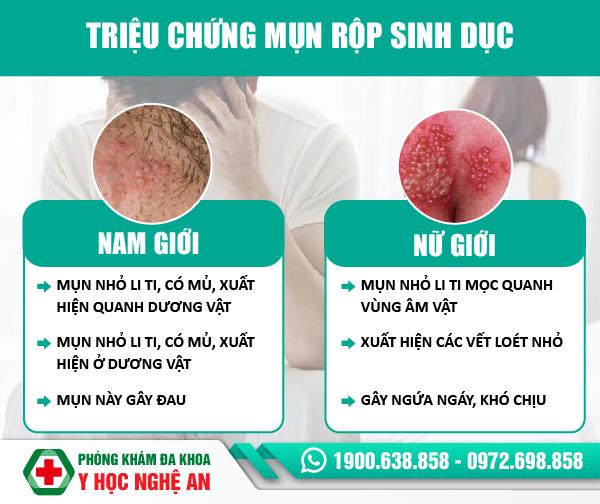 Các biểu hiện đặc trưng của bệnh mụn rộp sinh dục bao gồm: