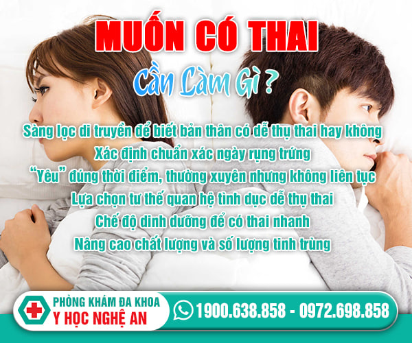 Trong khi nhiều cặp đôi rất dễ dàng trong việc thụ thai và sinh con, thì một số trường hợp khác lại mong mỏi chuyện đó từng ngày, từng tháng mặc dù cả vợ và chồng đều khỏe mạnh, không gặp vấn đề gì về sức khỏe sinh sản. Hiểu được tâm lý đó của các cặp vợ chồng, chuyên gia của phòng khám đa khoa y học Nghệ An mách nhỏ với bạn một vài “tuyệt chiêu” muốn có thai cần làm gì?