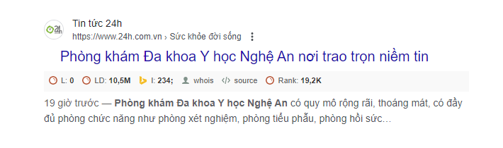 Thêm một nguồn báo uy tín mà người bệnh có thể tham khảo khi tìm hiểu về phòng khám đa khoa Y học Nghệ An – Báo 24h.com.vn.