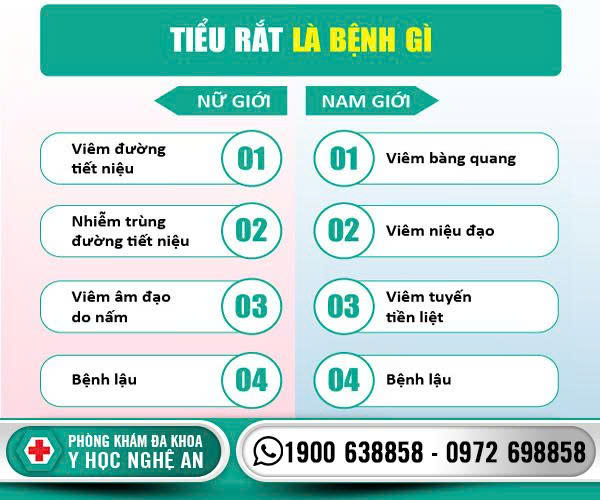 Tiểu rắt (hay còn gọi là tiểu lắt nhắt, tiểu nhiều lần nhưng lượng nước tiểu ít, đi tiểu không thoải mái) không chỉ do yếu tố sinh lý mà còn là biểu hiện của nhiều bệnh lý tiềm ẩn, đặc biệt là ở hệ tiết niệu và sinh dục. Dưới đây là những nguyên nhân bệnh lý phổ biến gây tiểu rắt: